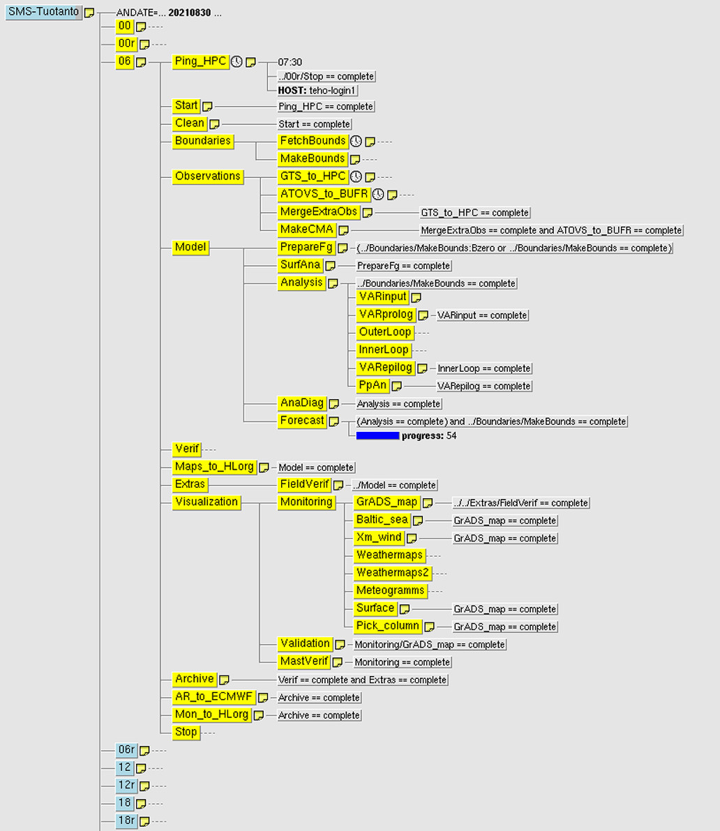 The forecast starts from a known initial state. Using the tendencies obtained from the physical atmospheric equations, the evolution of the atmospheric state during a finite length of time (time step) at each point is then calculated. This new state is then used as the initial state for the next time step and so on, until the desired forecast length has been covered.