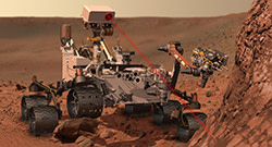 At present Curiosity is moving toward Mt. Sharp, a mountain located in the middle of the Gale Crater. By studying its surface layers, Curiosity will seek to ascertain the environmental conditions on Mars going back hundreds of millions of years.