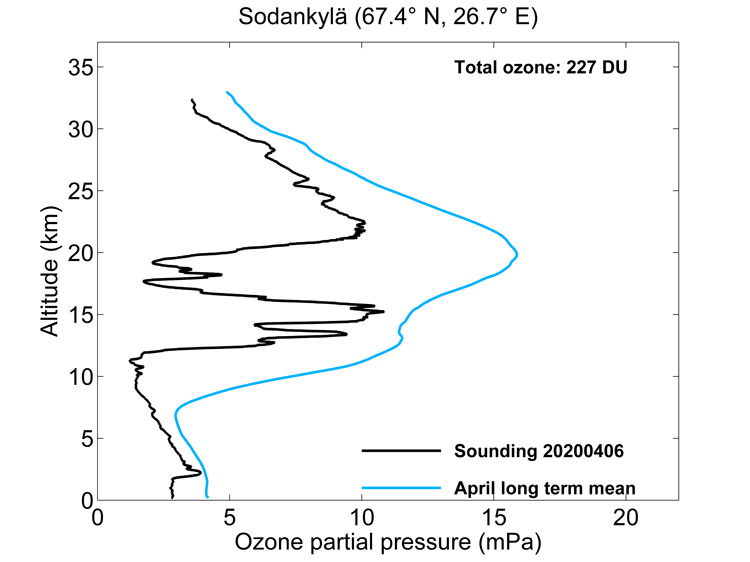 Record low springtime total ozone column over Sodankylä (news on space.fmi.fi website 9.4.2020):