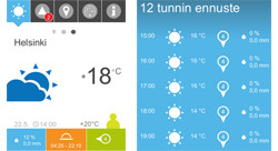 The application has a ten-day weather forecast for over 17,000 locations in Finland and for thousands of destinations abroad. Local weather data are accompanied by observations from Finnish weather stations. If phone tracking is enabled, the service will automatically show the weather forecast for the user’s location. The weather forecast includes the probability of rain, the hourly rainfall predicted, and the wind direction and speed. The application also shows the times for sunrise and sunset. Besides the temperature forecast, the application includes the ‘feels like’ temperature. The language selection available for the interface is Finnish, Swedish or English. The application has no advertisements.