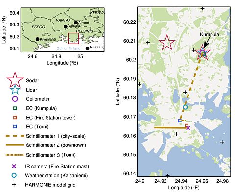 UrBAN is a collaboration primarily between the Finnish Meteorological Institute and the University of Helsinki. Our key tools are instrumentation that observe the atmosphere (eddy-covariance flux stations, lidar, sodar, ceilometers, scintillometers, infra-red cameras).