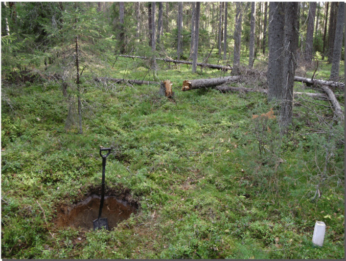Fig. 1. Taking soil samples from a Norway spruce forest for 14C measurements.